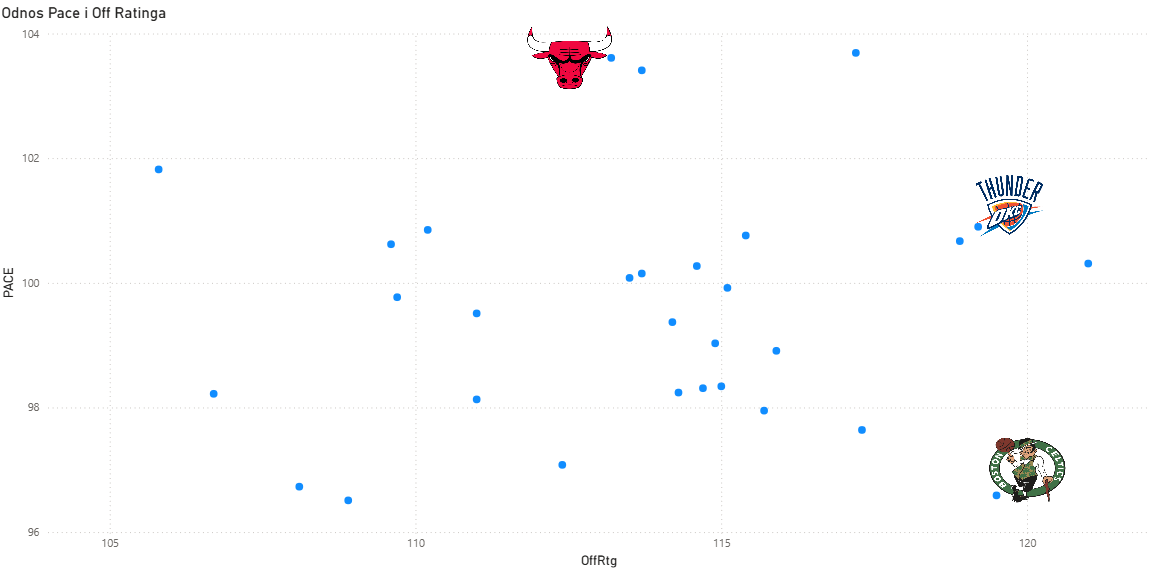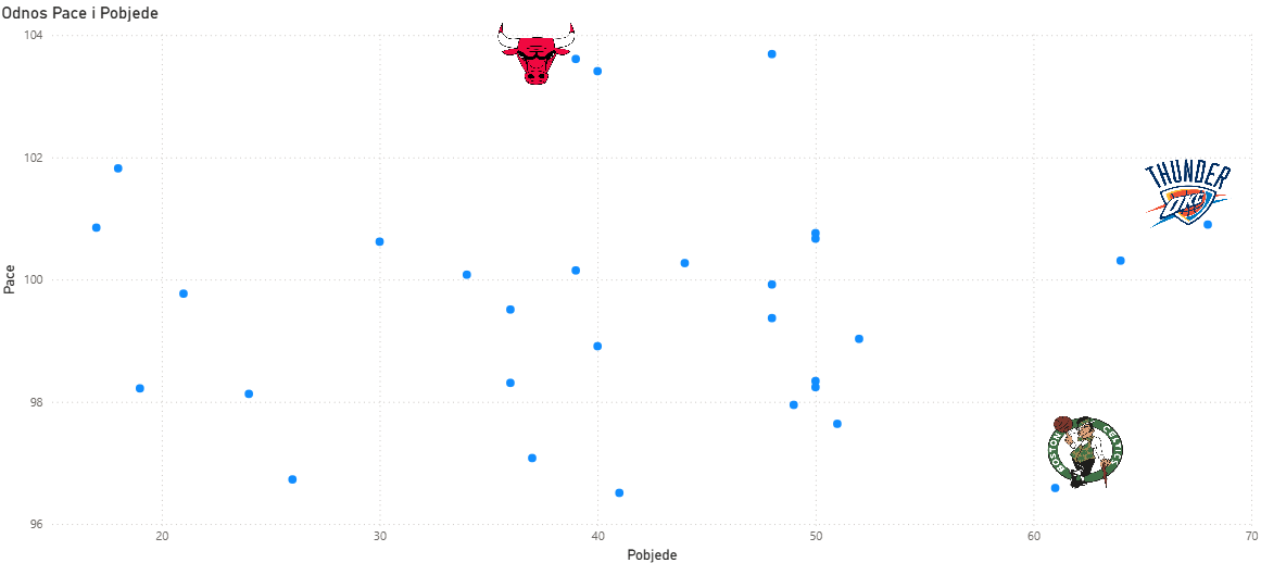 Primjer: Memphis, Atlanta, Oklahoma i Indiana — sve ekipe s visokim paceom i pozitivnim omjerom. Zajedničko im je to što imaju playmakere sposobne kreirati lagane poene u tranziciji. S druge strane, Washington i Chicago također igraju brzo, ali bez efikasnosti — njihova brzina ne donosi rezultat jer šutevi koje generiraju nisu kvalitetni.